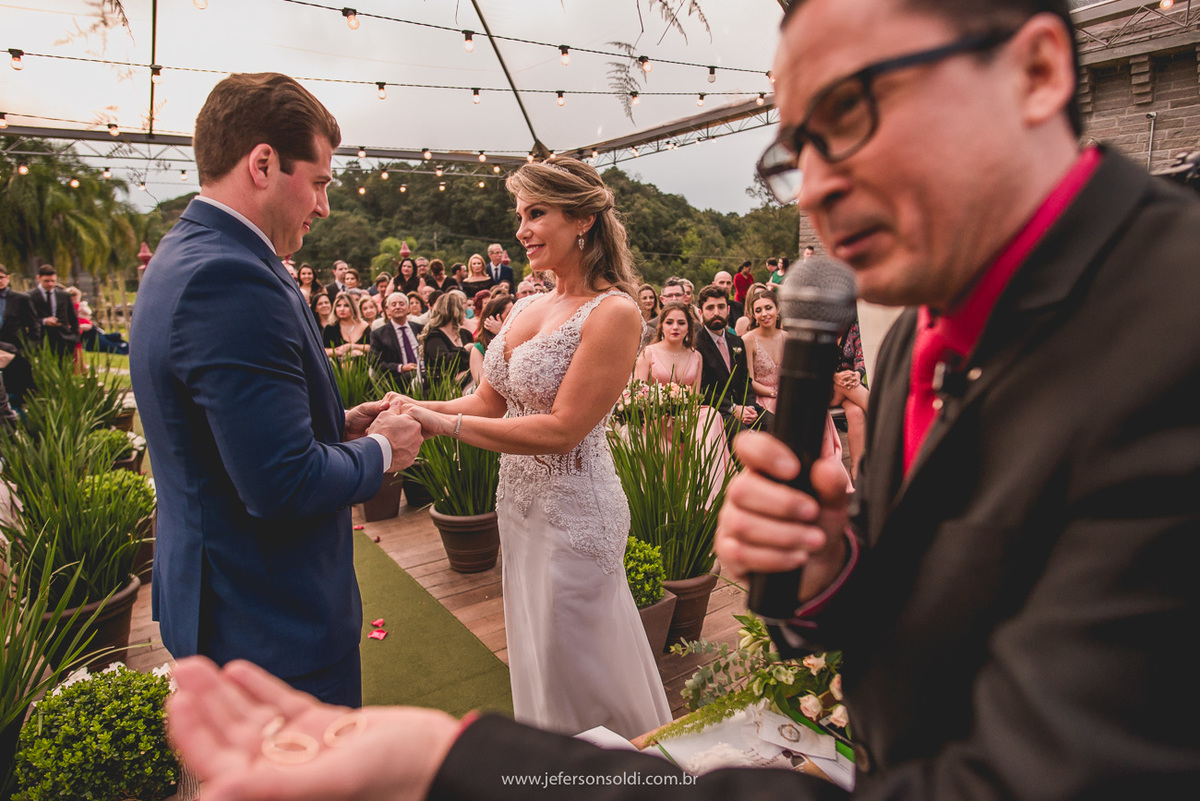 Sabe aquele momento que faz teu coração disparar e aumenta a tua adrenalina? Assim foi o casamento da Cleo e do Lauro, e não é pelo fato de ser um evento no qual você é o fotógrafo, e sim pela emoção que rolou desde o primeiro instante, onde o amor, a cumplicidade, a sintonia estavam tão presente em cada momento desse dia tão incrível que é impossível não se deixar envolver mesmo estando a trabalho, é algo que transcende tudo e se manifesta da forma mais linda e intensa. É o brilho no olhar de todos, não só pela emoção do momento, mas também pelo carinho de cada convidado que ali estava para testemunhar tanto amor e respeito! Foi incrível, mágico, perfeito em cada detalhe, tudo foi pensado e feito com tanta dedicação que víamos os noivos em todos os pontos da festa! A alegria deles foi contagiante e tomou conta do salão, e assim foi até o final da festa! O resultado dessa noite incrível? Uma festa linda, convidados satisfeitos, e um casal radiante e apaixonados dando um show de cumplicidade durante à noite toda! Meus queridos não tenho palavras que expressem minha gratidão por terem escolhido o meu trabalho para registrar esse momento único na vida de vocês e desejo de coração que a felicidade e o amor seja uma constante na vida de vocês todos os dias! Que Deus abençoe e proteja essa união a cada dia! Grande abraço e foi um prazer fazer parte desse dia tão importante! Gratidão 🙏🏻